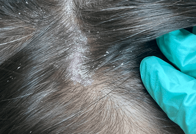 scalp și alte zone ale corpului, cum ar fi fața (sprâncene, nas, urechi, barbă) și pieptul. Diagnosticul se bazează de obicei pe un examen fizic și pe istoricul medical și, uneori, se poate face o biopsie a pielii pentru a exclude alte afecțiuni.